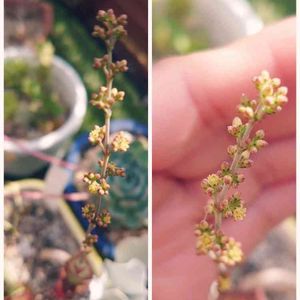 多肉植物(おぼろづき)の葉を一枚挿して、何年も経ちました メドゥウサの頭?みたいに枝を伸ばして、花も咲きました 手間がかからないので、私向きです😅