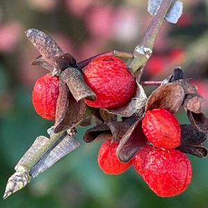 秋は実も葉も美しく彩られ見つける楽しみが増えますね🤗💕 *ピラカンサ❤ *ニシキギ❤ *クロガネモチ❤ *ナンキンハゼ♡ *トウカエデ💛 これらの実を食べに来る小鳥たちの混群が楽しみです。先日見たのはシジュウカラ、エナガ、メジロ、でした。