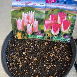 ガーデンスタイリングさんから球根と花苗の春らんまん寄せ植え @gardenstyling_dinos もうすぐ、桃太郎🌷が咲きそうだよ😚💕 華やかになりそうです🌸