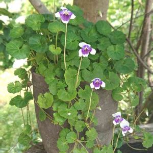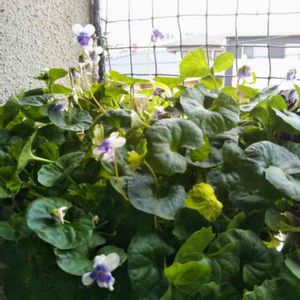 パンダスミレ (ツタスミレ) 可憐な花を咲かせるスミレ❁・*:..。o○ どんどんツルを伸ばし 範囲を広げてくれます🌿✨💞 白と紫のコントラストが パンダの白黒のコントラスト🐼に 似ているからこの名前が ついたのかな~~😊💕 勝手な思い込み(((*≧艸≦)ププッ