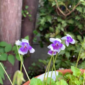 今日は、爽やかな快晴! 庭のヒョロヒョロに花が咲きました🌸 見切り30円のゴテチャです。 蕾もまだあるし、完全に元取りました笑 右下は、パンダスミレが又咲き出しました😍😍😍