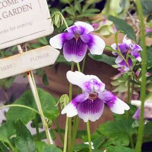 キンギョソウの花が重過ぎてかなり傾いている😅💦💦 対象的にぱんだすみれ🐼が真っ直ぐ伸びて花が咲いてきた😆