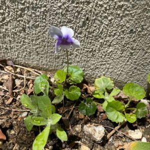 🐼🐾パンダスミレ🐼🐾 冬越し出来たようで、1輪咲いてました。強い子ですね💕︎ これから、モリモリ(*•̀ᴗ•́*)و ̑̑になるでしょう❣️