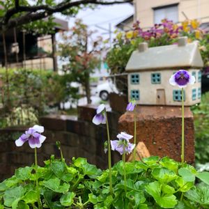 おはようございます☁️ お天気下り坂の連休初日🌿 雨が降り出す前に一枚 庭のあちこちからパンダスミレさん🤗