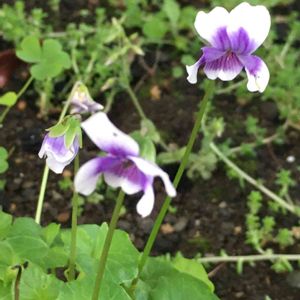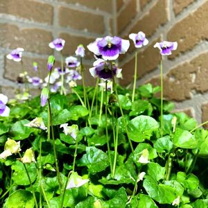 最近は雑草扱いになっている土間コンとレンガの間のパンダスミレ🐼 野生と鉢の中とどっちが幸せかしら~😁