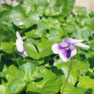 植木鉢から溢れそうになってたパンダスミレ ちょうどいい半日陰の場所に地植えしました😊 のびのび咲いてねー🥰