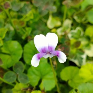 雨上がりパンダスミレがクローバーの間から顔を出してくれています