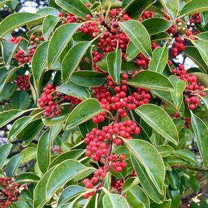 宍道湖サービスエリアで見かけた「クロガネモチノキ」。 ヒヨドリが赤い実を啄ばみに来ていた。