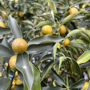 きんか〜んです。これから黄色が増してくるのかなぁ?ビタミン一杯の金柑です。 (*☻-☻*)