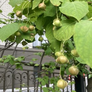 あけぼの山公園の日本庭園で初めて見た「ハクウンボク」。虫食いが酷い葉があった。 垂れ下がった丸い実がいかにも「エゴノキ」の仲間らしい。