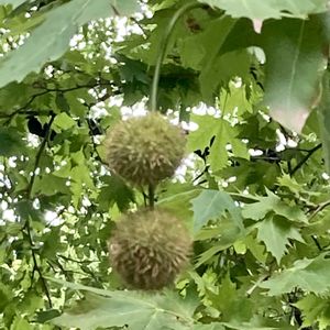 日比谷公園 心字池のほとりの「スズカケ」の木に実がなっていた。 草地広場にはいろんな鈴懸の木が植えられているけど、小雨が降り出したので、今日は行くのを断念。
