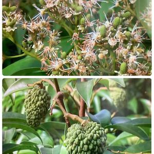 🪴我が家の庭🪴 食べた後の種から育てて… 何年だろう❓ 初めて実がなりました❣️ 5個ですが…😅 ひとつ小さいのを味見👀 すっぱ🤣 あまり大きな木には育てられないのでどうしていこうかなぁと悩み中🤔