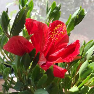 先日のめっけもん 花が咲いてように見えたカランコエ 隣の鉢から落ちたハイビスカスの花 すっぽりはまっていた