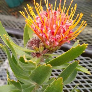 ピンクッション ヤマモガシ科 南アフリカ沿岸に分布 突出しているのが雄しべ。 白い種子にはアリが好む イライオソームと言う器官が 付いていてこれを食べたアリ が種子散布を助けてるそうです 面白いですね。😆 花言葉 どこでも成功を