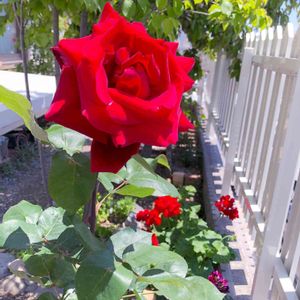 大苗の薔薇 「ミスター リンカーン」 真っ赤な薔薇のミスターリンカーンが咲きましたよ🎶 鮮やかな色です。 沢山の蕾ができているので嬉しいですね🎶