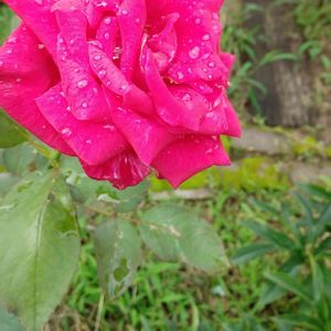 薔薇 「ミスター・リンカーン」 あいにくの雨になってきました。 ミスター・リンカーンが、今日は沢山咲いています。 こんなに纏めて写メ出来るのは、今回が初めてです。