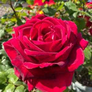 「ミスターリンカーン」 大輪の薔薇なのですが、春よりは小さいです。 8~9cm程になります。 暑さも穏やかになり、涼しくなって来たらポツポツと咲いてきています。 今回の台風の被害は何も無かったので助かりました。 普段より雨が多かった程度でした。 天然のミネラルで益々元気になって来ますね。