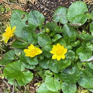 いつのまにか顔を出して…😊 今朝咲いたヒメリュウキンカ