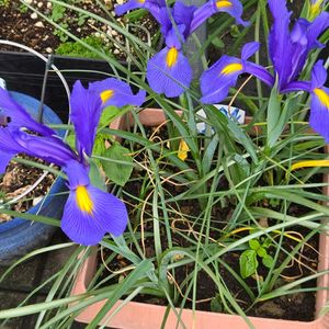 「ダッチアイリス」 5月9日am6:32頃 ✧p📷qω•,,´)パシャ✧ 今年も咲いてくれました。 ダッチアイリス パープル💜とイエロー💛 黄色は昨年もヒョロヒョロ徒長みたい、有り得ないけどね。 日差しバッチリだからね。 支柱🍲´-をつけました。🤣 薔薇以外に、屋上に20数種類の花が咲いています。 春だな🌸🤔夏か‼️ と思う程 5月なのに暑いですね。 作文製作、3時の休憩時間 帰ったら(🍺•᎑•🍺)呑もう🎶