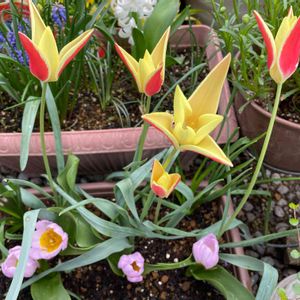 原種チューリップ🌷 去年植え付けた球根。どんなお花が咲くのか楽しみにしてました。 スタイリッシュなお花とミニミニさんととてもかわいらしいです。
