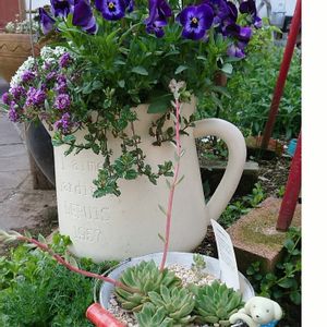 こんばんわ🌠 先日のタニトモちゃんとのランチした時に 多肉交換会をしました💚 前もって『これあげられるよ〜』 『じゃぁ、それちょうだーい⤴️』と やりとりして仲良く交換♻️ こうやって育て方を教えあったり 初めましての多肉に出逢えるのって ステキですょね💗 頂いた多肉を早速集め寄せしました 梅雨前なので、ゆったり植えにしたよ リトセアちゃんからのツメレンゲ、玄海岩蓮華 きなこちゃんからのロッティ、アモエナビルバ、ホワイトストーンクロプ 私のマーガレットレッピン 出逢えた記念に3人のコラボ寄せにしました 元気に育ってね♥️💚