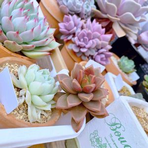 松本フラワーセンターさんへ行って来ました( ´ω` ) 綺麗な子がたくさんいて迷いに迷って、手前の4つ。 ・花月夜 ・アルバ ・桃太郎 ・イードンスノー 仲間入り💚 桃太郎さん🍑、うしろにお母さんいるよー!(チワワエンシス) お母さん成長点が家出してるらしいよ🤷🏻 はー、みんな可愛くていつまでも眺めちゃう…