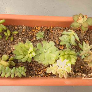9個あった多肉ちゃんの鉢を1つにまとめました〜٩(ˊᗜˋ*)و 寄せ植えとも言えないなんとも不細工な出来栄えですが笑