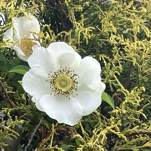 おはようございます☔️ 今日は、これから大雨になるそうです⚡️ そろそろ終わりの頃でしょうが? 近所のナニワイバラです🤍 🏷️金曜日ローズショー に参加します