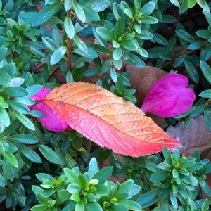 落ち葉💗🧡❤️ 桜と山茶花。 色のあざやかさにハッとして💕 パチリ🤳✨ この色は見逃さないよね〜🥰