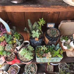 この前、植え替えした多肉チャン達。 レ-ドル底がサビサビで崩壊しかけw😅