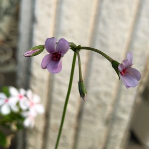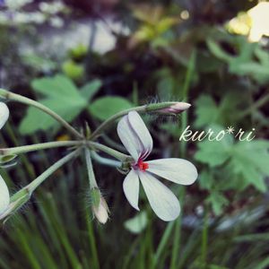 花色…捉えられたかな? 『ペラルゴニウム・パールグレー』 東アフリカ原産の原種ペラルゴニウム。 見る角度によって偏光パールのように色味が変化する花色が魅力。 葉っぱや茎、萼に生えている産毛もとってもかわいらしい。 やっぱり写真ではわかりにくいので出逢ったら是非育ててみてください。