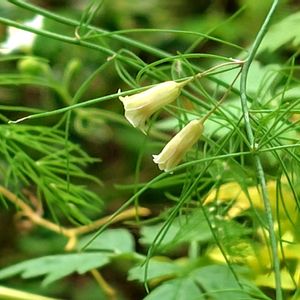 アスパラガスの可愛いお花が咲きました🌿 ぐいーんとアップして見るとりんりん鈴の音がしてきそうな可愛い形です🎶 お野菜のお花は食べちゃいたいほど可愛いですね