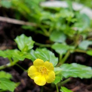 ミゾホオズキ(溝酸漿) ハエドクソウ科 花期は6-8月 花径…1㌢程 筒状の萼の長さ…1㌢程 全国に分布 湿った所に這うように 自生しています🌿 7月24日.英彦山で🤳