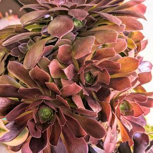 アエオニウムのplum purdyさん プラムプーディーと読むのかなぁ?😅 独特のカラーが素敵な株です(笑) 2枚目は購入したばかりの写真です😁 こう見ると成長著しいのがよくわかります(笑)😆 今日は暑いくらいに暖かなのに、風がビュービュー吹いています😵 これは春一番なのかなぁ?🤔