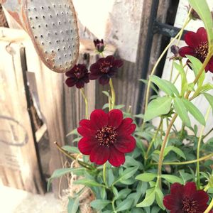 待ちに待ったチョココスモス地植えにしてやっと咲きました。 嬉しい😆😆😊😊です なぜか可愛い💕