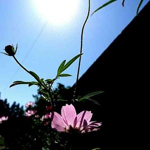 ウィンターコスモス 秋の昼下がりピンクのウィンターコスモスが咲いています。 通りすがりの人々に微笑むように… 風にゆられて笑っているかのように、ずっと優しい笑顔でした。