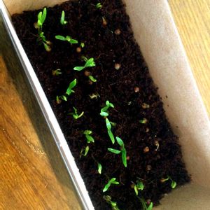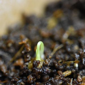 小さな芽が出ました! ちょうどタネを蒔いてから1週間での発芽です。