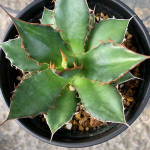アガベ🌿ホリダ 猛暑で下葉が少し葉やけしたけど相変わらず調子良さげ⤴️ 久しぶりに雨に当たって開き気味ぎでパツパツ✨ 我が家で二番手のカッコいい子✨ 一番手は?