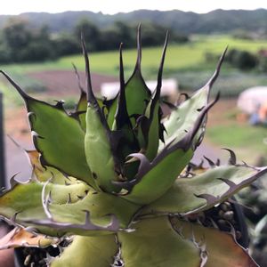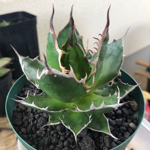 🪴アガベ ホリダ🪴 厳つく黒っぽい色合いの鋸歯。 ライムグリーンとのコントラストもかっこいい😎 お気に入りです✨