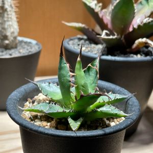 🏷毎月7日はアガベの日 🏷勝手に7日は爪エッジ棘の日 今朝は最悪な事態が🐜アリ 疲れきって仕事に😭 今日は、7日だったことに気がつき2号ポットの小さなアガベさんをpic 外のホリダは、葉やけ茶ホリダだけど この子はテーブルプランツとしては育ててるから綺麗な緑✨ 癒されて午後も頑張るぞ💪