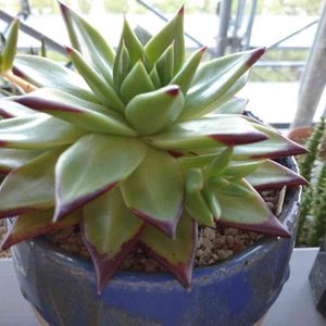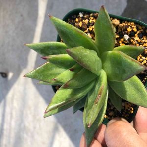 おはようございます☀ ✨エケベリア 魅惑の宵✨ 日に当てています、染まってきました💕 この子は大きいです、10センチはあります。 順調に育ってくれて ありがとー❣️