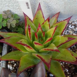 【エケベリア属 アガボイデス マルチフィーダ】 Echeveria agavoides 'Multifida' 和名 魅惑の宵 【エケベリア属 アガボイデス レッド エッジ】 Echeveria agavoides 'Red Edge' 和名 魅惑の宵 (魅惑の宵の以前の呼び名) Echeveria agavoides 'Lipstick' 直径🌱24cm 我が家のデカベリアの中で、 No.3に入りました (ʃƪ^3^) 1位✨ジュリア✨40cm 2位✨ネオンブレーカーズ✨30cm 3位✨魅惑の宵✨24cm 「作出者不明 以前、リップスティックと呼ばれていた品種 原種ではなく、cv(園芸品種)とされていたが、最近、agavoides 'Multifida'(マルチフィーダ)に変更」 【羽兼直行】さんの著者から抜粋