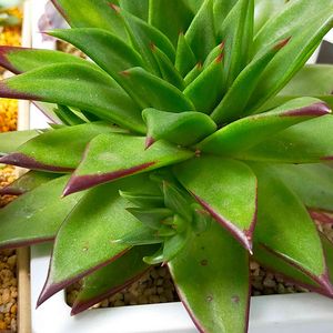 魅惑の宵。 お母さんに凄く押し潰されていたので 植えて3ヶ月くらい経ちますが 形が変形してしまってるのがまだ なおってません。 そしていずれは魅惑の宵に押し潰されてしまうであろう、その他アガボイデス系子株達。