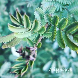 今日は春のように暖かいですね❣️ アカシア・ダークアイ、初めて開花しました👏👏👏 やった〜😆😆😆 ポヤポヤ🟡🟡🟡 Happy‼️ 紫🟣の葉っぱも大好きです🎶
