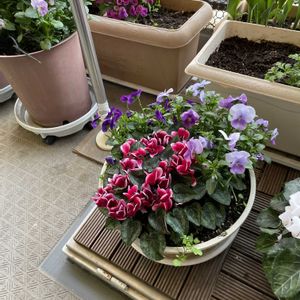 こんばんは🌛 ①②③買っていたシクラメンやビオラを寄植えでリーフだけ残った鉢で寄植えにしました🌿 ①はラベンダーピンクのようなカルーナガーデンガールズに出会えたのでペチコートと一緒に植えました🩷💜🌿 ④ガーデンシクラメン ジックスとビオラと残ったリーフと植えようとしたら、土が無くなってしまって😂土を買いに行きましたが、帰って来たら真っ暗になったのでまた後日植えます😅 チューリップ🌷もそろそろ植えていいのか迷い中。