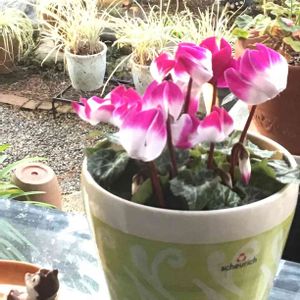 おはよう😊ございま〰️す‼️ 寒さに強い ガーデンシクラメン💕 窓ガラス すぐ外に 置いてて、 室内から いつも 見えて、この子に 楽しませて もらっています。 日中は 思ったより 暖かくなるのに、、朝 ・ 晩 特に 朝は やはり、苦手💦 さ む〰️い ‼︎‼︎ 💦💦😨