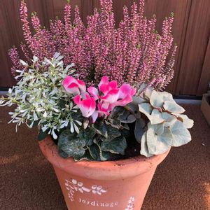 🌸寄せ植えNo.3🌸 カルーナ シクラメン インディアカ シクラメン プラチナリーフ アフロディーテ ユーフォルビア 白雪姫 プラチナリーフのシクラメンは今年からだそうです。 薄いピンクの可愛い花が咲くそうです😊