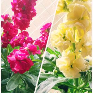 ポカポカ☺️🔆ですね 濃いピンク💓とクリーム色のストックさん 今日はお部屋で香ってますよ✋(´ᴖωᴖ`)