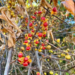 ツルウメモドキ(ニシキギ科)神奈川県より 2022.11.16撮影📲在来種 北海道〜九州まで分布があります! 誰もが、リースを作れますね〜🤗 でも〜玄関に飾ったら、小鳥達が食べちゃうかなぁ⁈