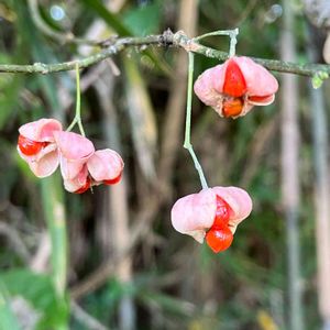 マユミ(真弓) ☘🌲🍎 マユミの果実の仮種皮が弾け赤い種子がのぞきました😲